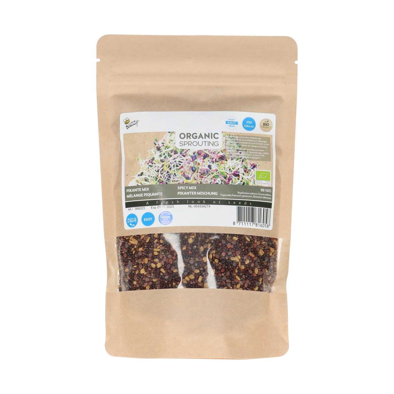 Spirerne er klar til høst efter ca. 6 dage. Posen indeholder ca. 250 g. frø.