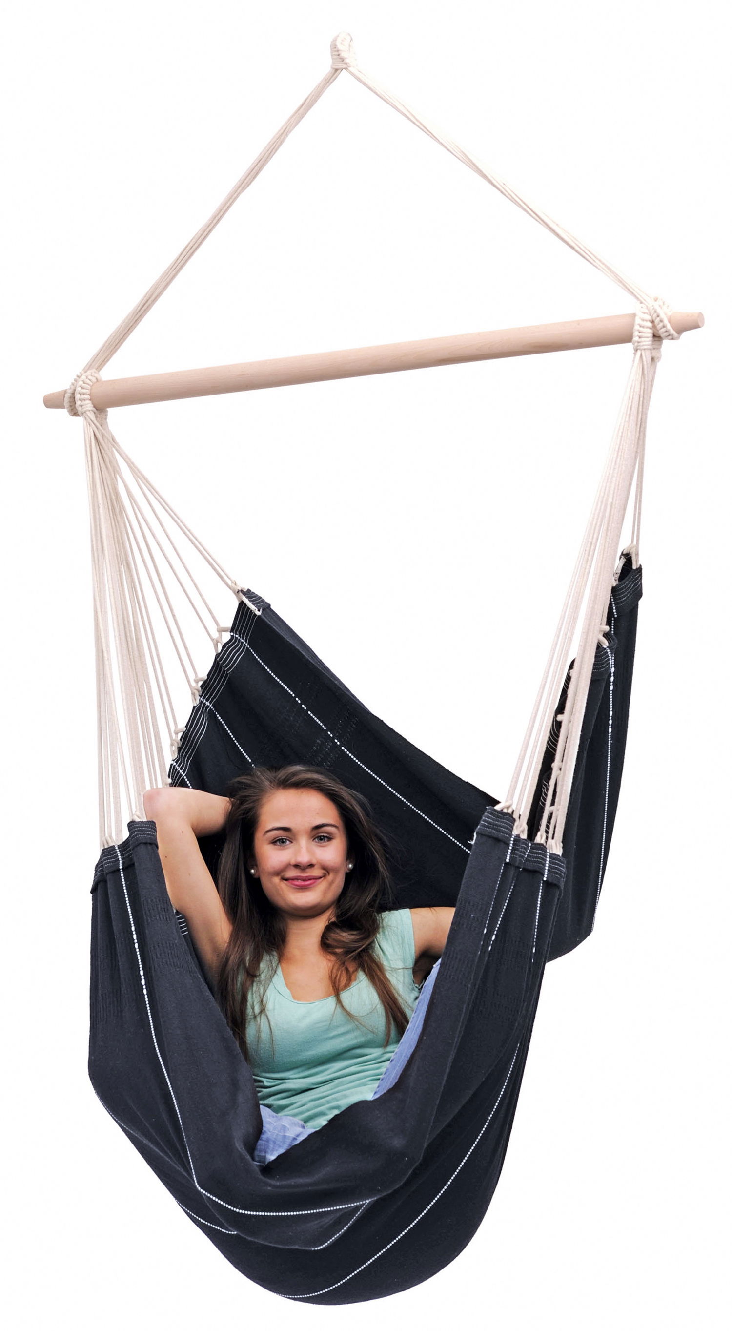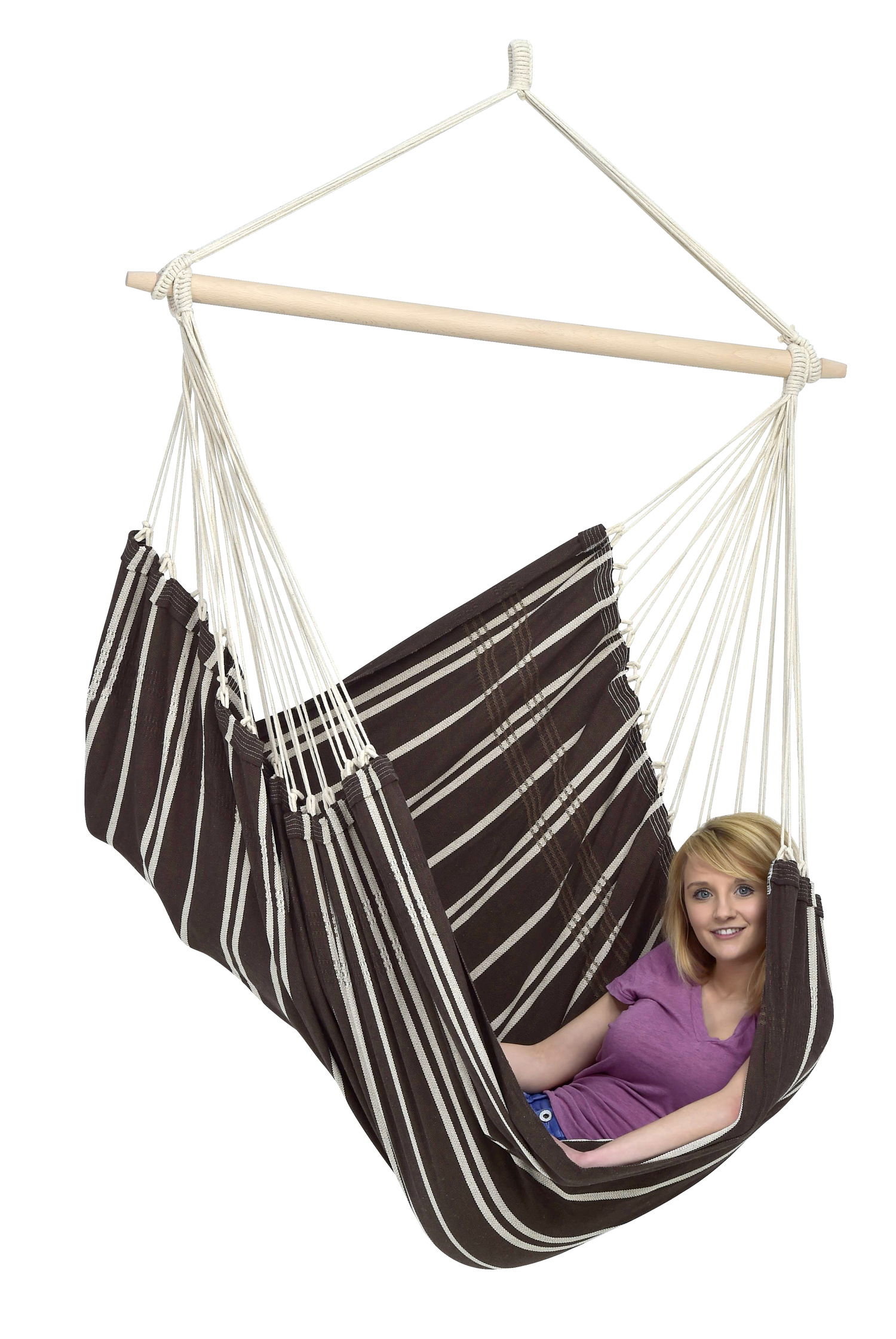 Brasil hængestolen fra Amazonas overrasker de fleste - selv Brazilianerne. Hængestolen har en bæreevne på op til 150 kg. Brasil hængestol er et kvalitets produkt med god plads.Brasil er en luksuriøs hængestol der er håndlavet og fås i mange forskellige farve nuancer. Hængestolen er lavet af bomulds-rester fra tekstilproduktion. Dette er en fornuftig og økologisk venlig måde at støtte beskyttelsen af et bæredygtigt miljø. Kvaliteten er man ikke gået på kompromis med, da Amazonas har designet hængestole med 30 meter tykt flettede stropper.
