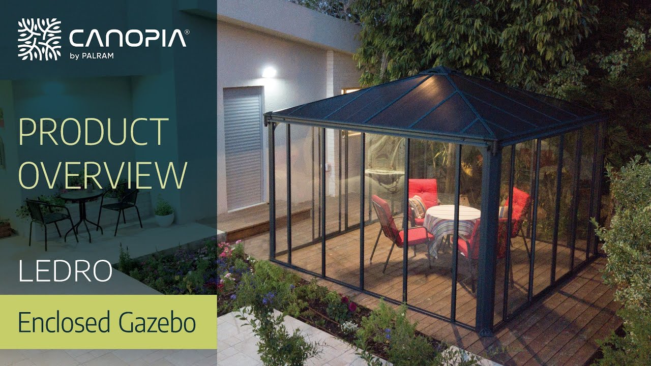 Ledro 3000 lukket havepavillon fra Palram - Canopia giver elegance til din have og kan bruges hele året. Den er fremstillet i grå en pulverlakering med et bronze glasur farvet tagkonstruktion. Den er rustbestandig og ser fantastisk ud i enhver have.
