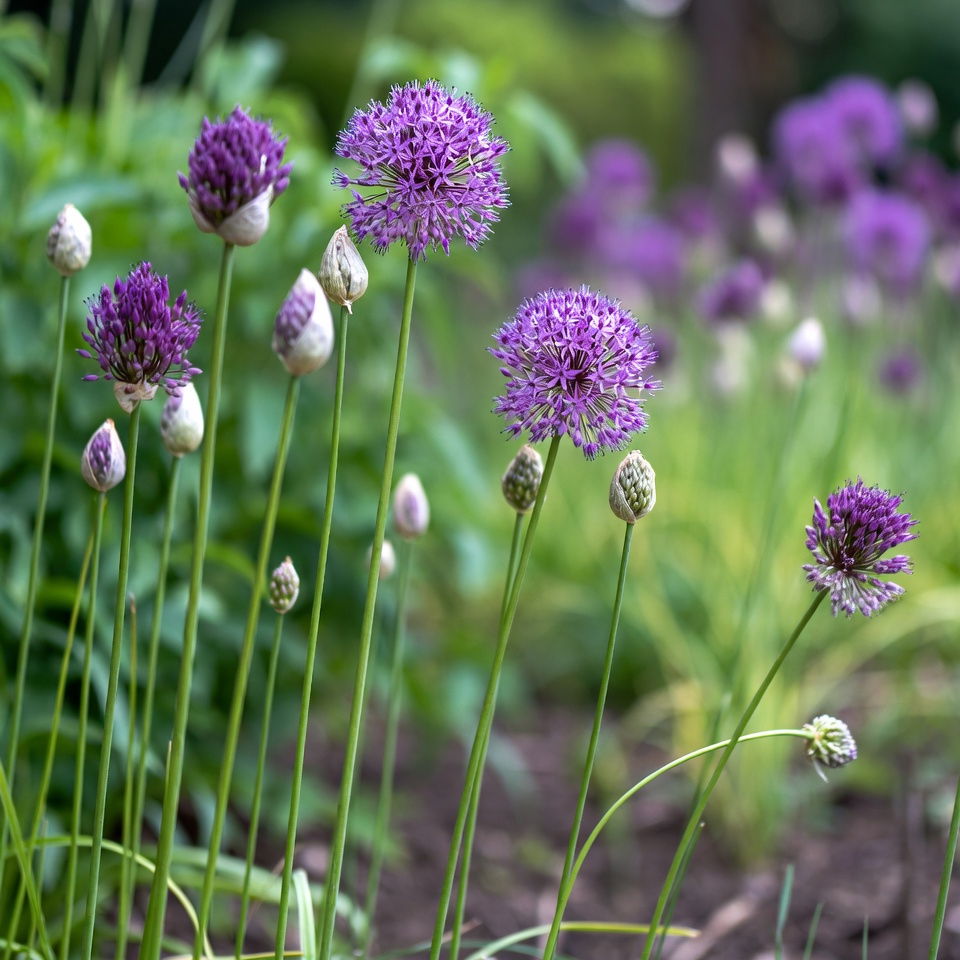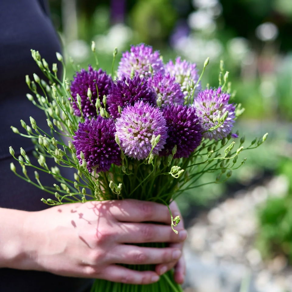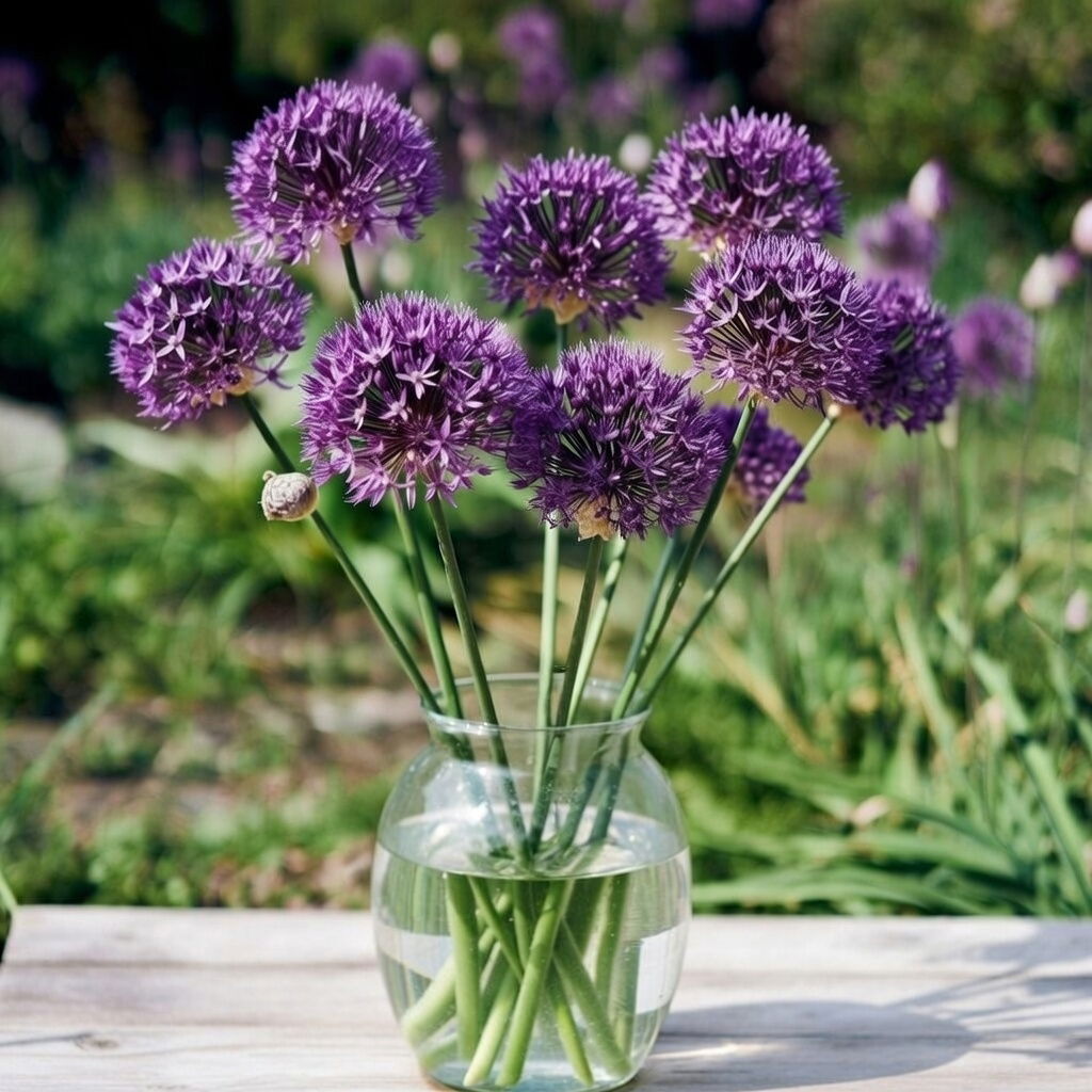 Du kan med fordel klippe blomsterne af 'Purple Sensation' og bruge dem til elegant dekoration i vaser. De ekstravagante blomsterkugler blomstrer fra maj til juni blomstrer, og ud over at se flotte ud, giver det også føde til en lang række gavnlige sommerfugle, humlebier og bier. Prydløget kan sættes i almindelig havejord og bør placeres et sted i haven hvor der er læ.