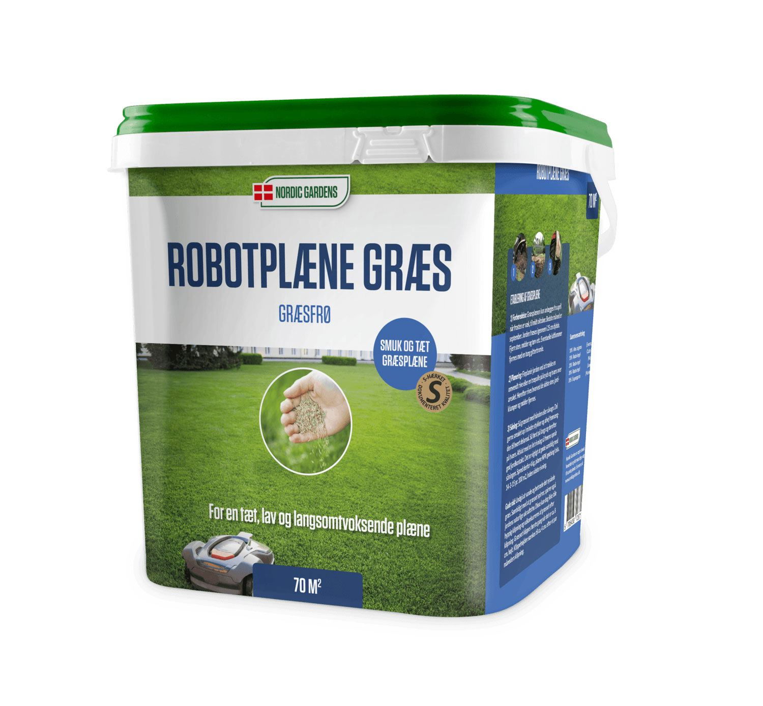 Nordic Gardens Robot plænegræs er vores helt fine, tætte og langsomtvoksende græsblanding. Robot plænegræs kræver pasning i form af halvårlig vertikalskæring og hyppig gødskning. Til gengæld får du en fantastisk smuk plæne, der virkelig praler og er perfekt til robotplæneklippere.