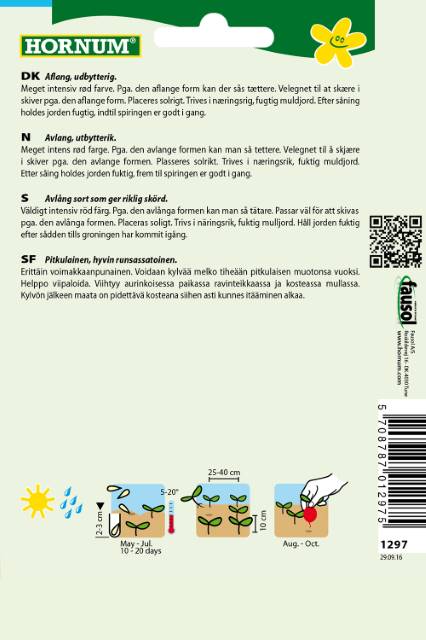 Klassik aflang rødbede med meget intensiv rød farve. Kan i kraft af sin aflange form sås tættere og er af samme grund let at skære i skiver.