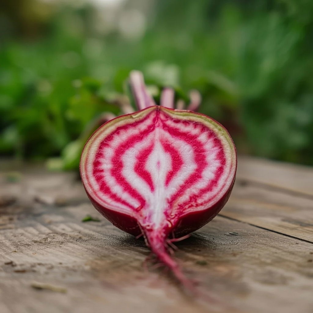 Rødebeden Chioggia ser anderledes ud end andre rødbeder på grund af sit specielle røde og hvide mønster. Når du skærer den i skiver, får du et smukt stribet mønster som gør den sjov og farverig at spise.