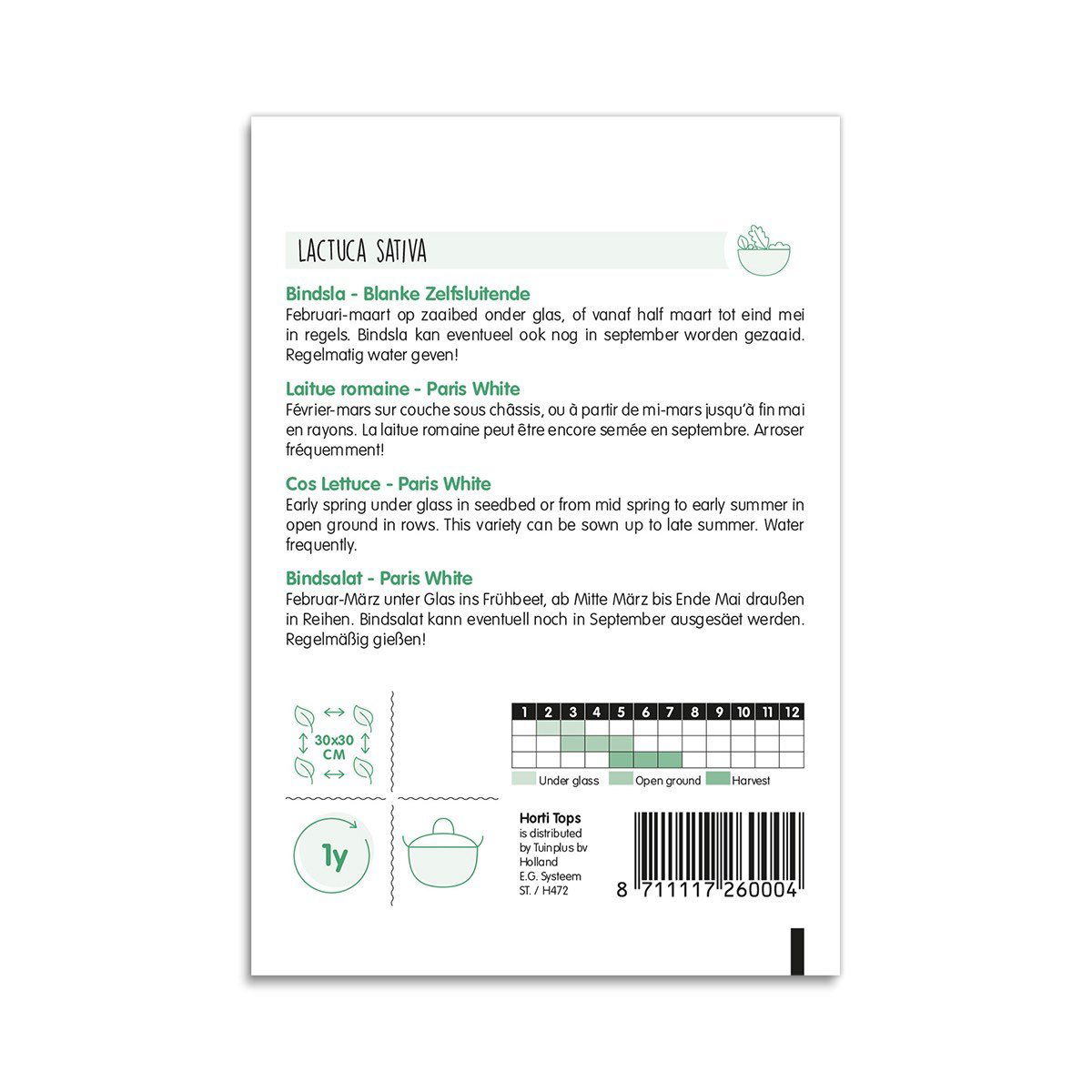 Romainesalat sort Paris White, er en variant der giver aflange lysegrønne eller hvide blade.