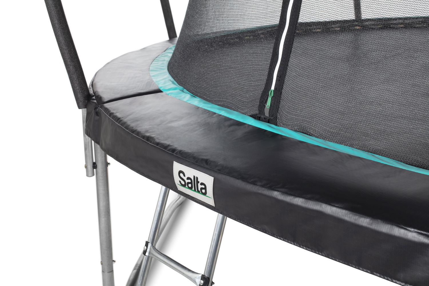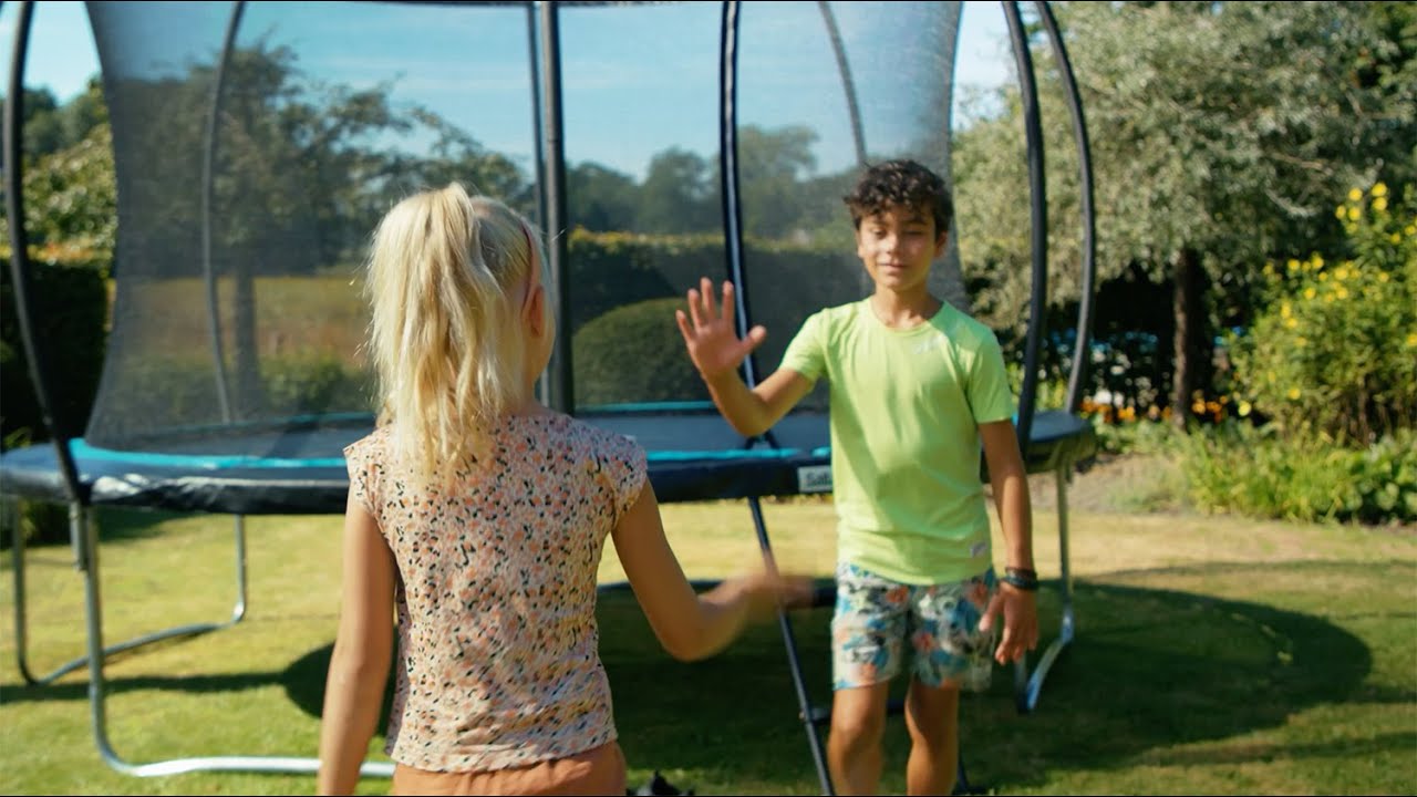 Udover den solide kvalitet er denne trampolins udseende også imponerende. De runde, slanke former i kombination med den turkise stribe på kantmåtten giver trampolinen et hårdt look. Cosmos passer problemfrit ind i ethvert miljø!