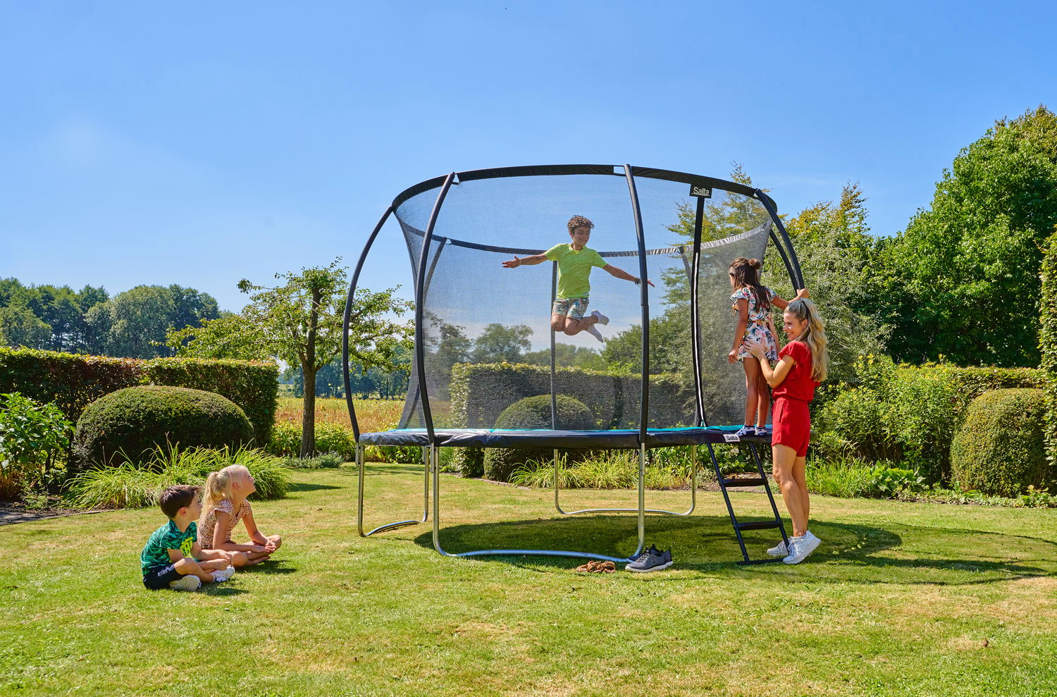 Salta Cosmos leveres inklusive stige. Dette giver børn mulighed for at komme ind i trampolinen på en sikker måde.