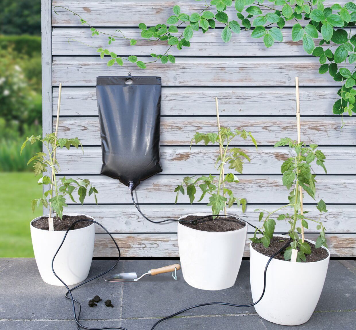 Når du ikke er hjemme, kan du stole på, at systemet leverer præcis den rette mængde vand til dine planter. Den konstante fugtighed hjælper med at holde dine planter sunde og støtter deres vækst. Systemet forsyner dine planter eller grøntsager med den nødvendige fugt - udelukkende ved hjælp af tyngdekraften, så der kræves ingen ekstern vandforsyning eller elektricitet.