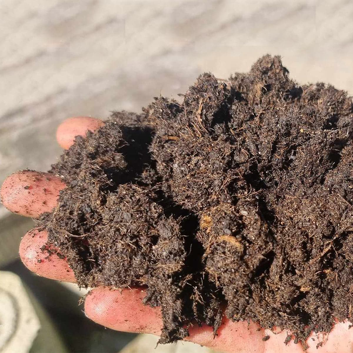 Træuld kan ikke være økologisk certificeret. Det betyder desværre intet ø-mærke. Men det er også den eneste del af produktet der ikke er 100% økologisk. Farmergødning ønsker ikke bare det mest miljøvenlige produkt, men også det bedste og træulden gør bare noget helt specielt! Luftighed og sugeevnen gør dette produkt til en fantastisk erstatning for spagnumprodukter.