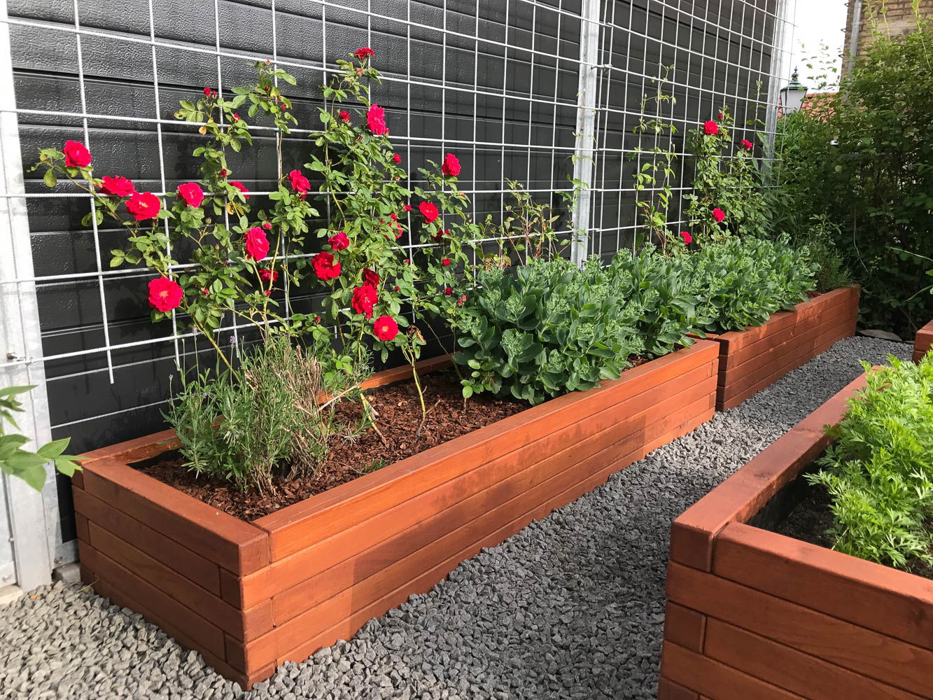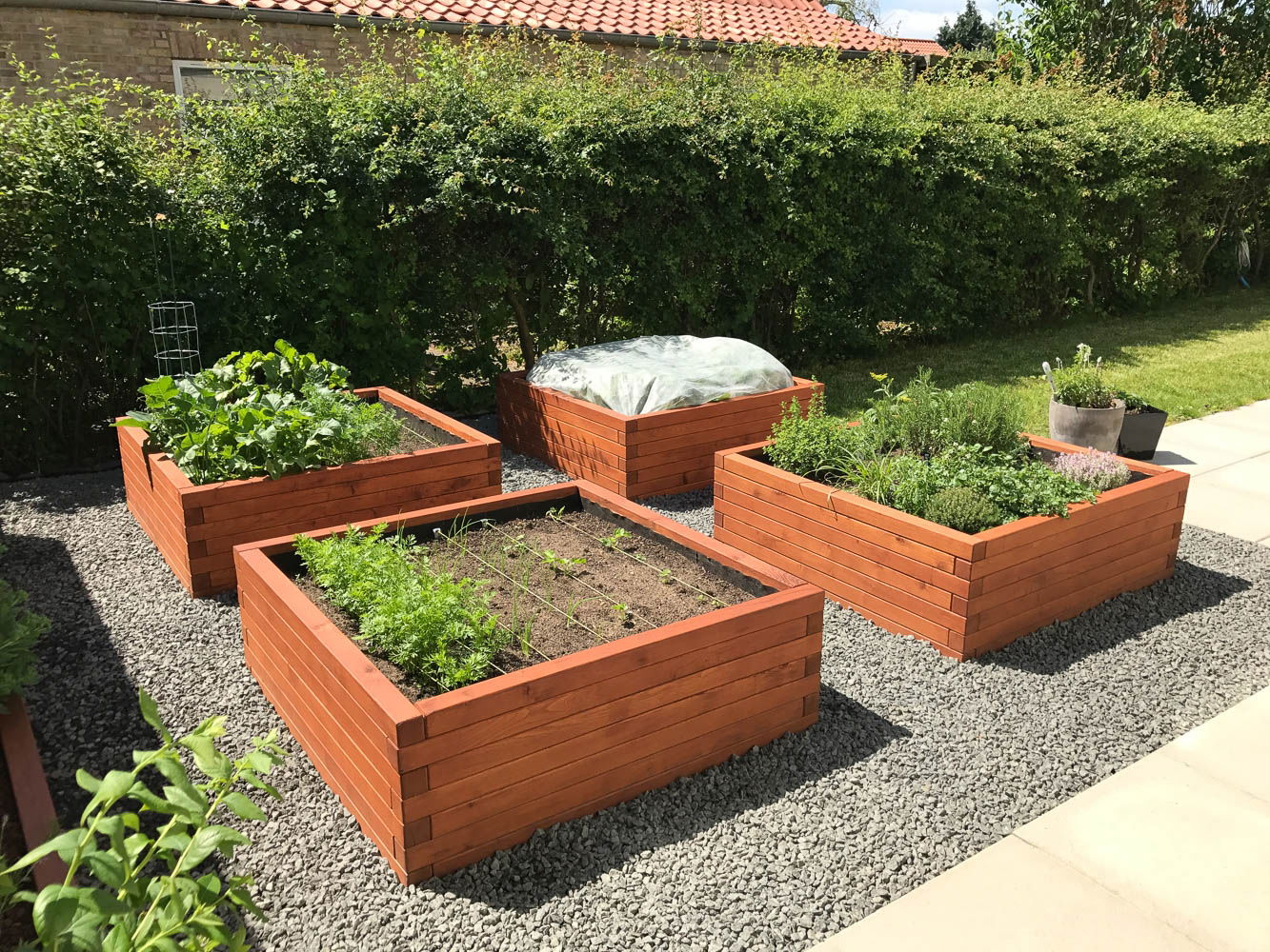 Flotte og dekorative højbede som er lavet af det ekstrem holdbare robinietræ. Træets holdbarhed kommer af den høje kerneandel og tætte struktur, og forhindrer større mængder vand og fugt i at trænge ind i træet.