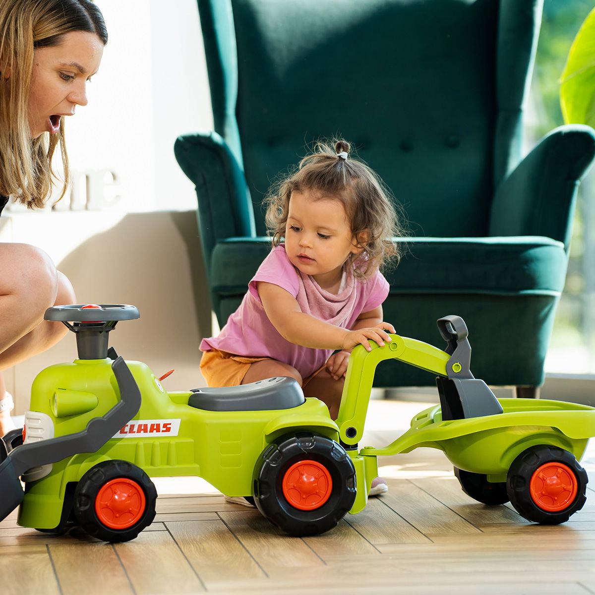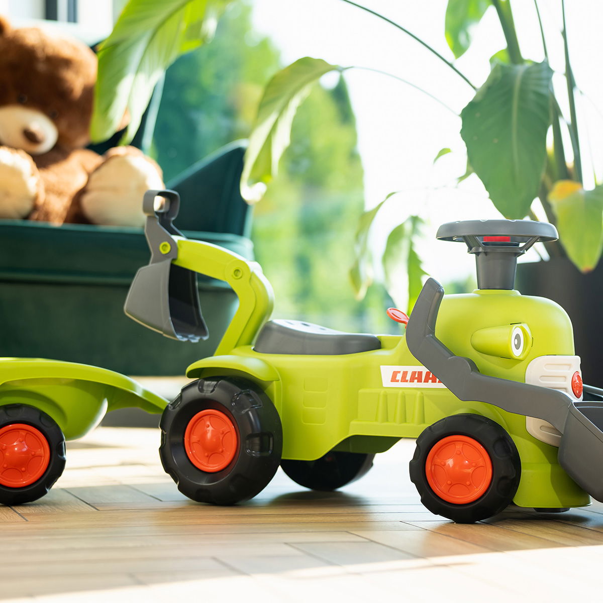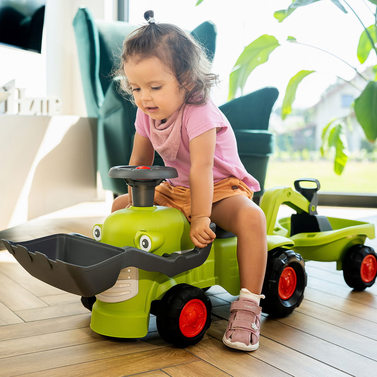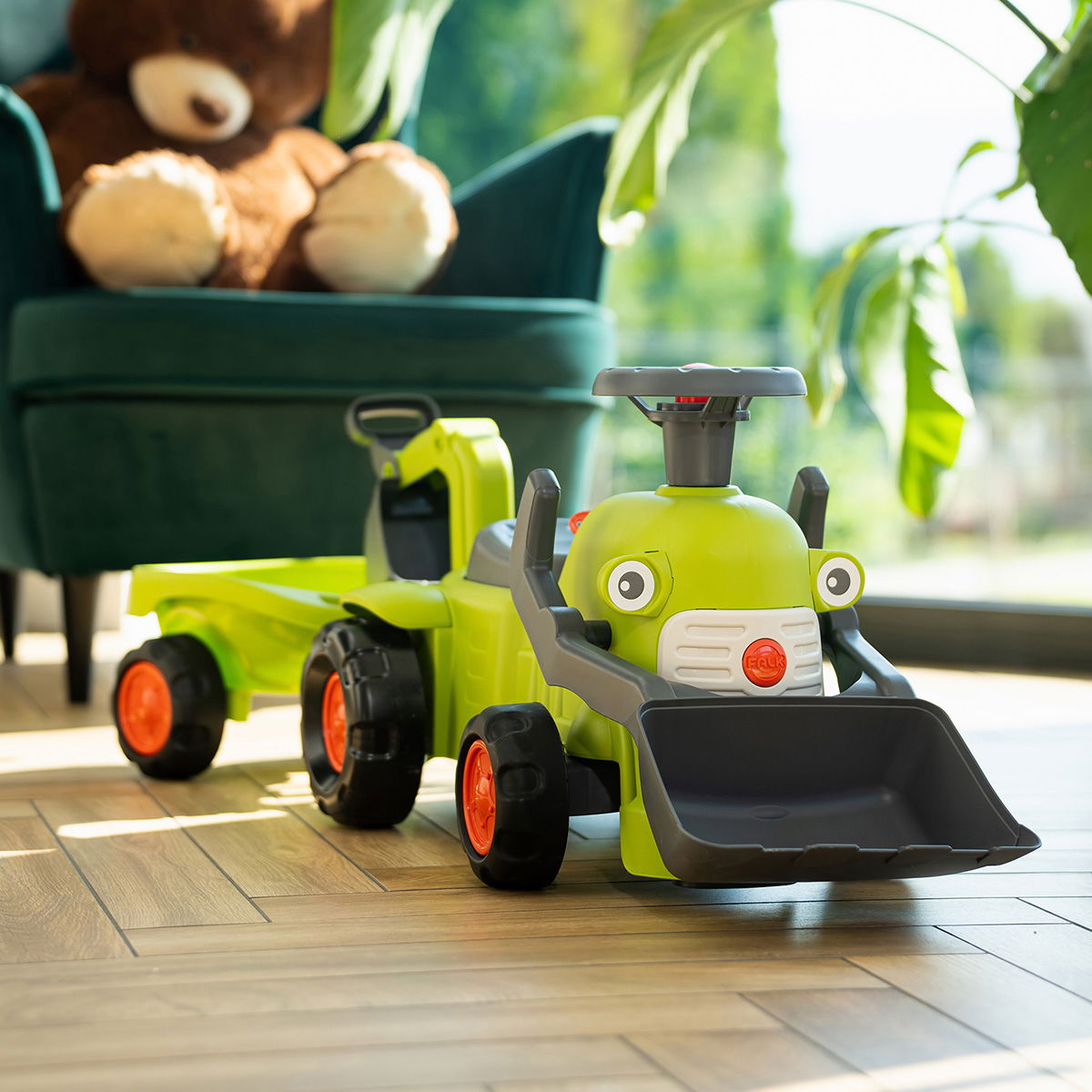 Denne solide og charmerende traktor er den perfekte første arbejdsmaskine til børn i alderen 1 til 3 år. Traktoren giver rig mulighed for både skubbe-, transport- og graveleg, uanset om arbejdet foregår i haven eller i stuen. Den er designet til små hænder og store idéer, hvilket gør den nem og sikker at betjene.