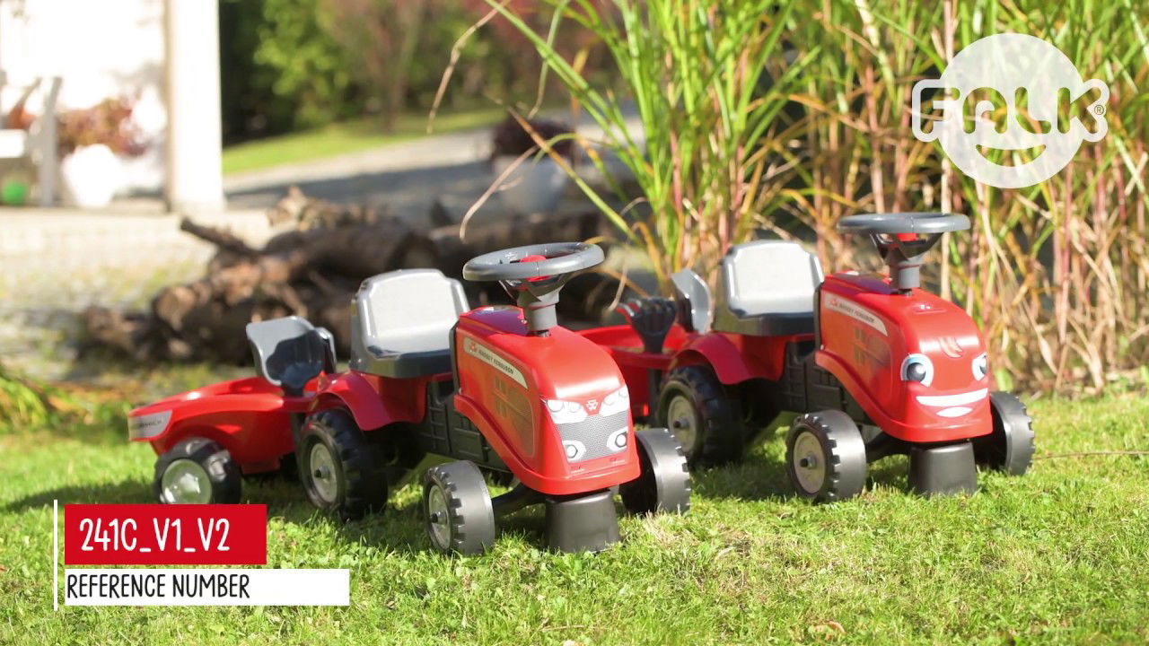 Den skønne orange farve tiltrækker barnets opmærksomhed, og kommer med en vogn, hvor der er isat rive og skovl. Køretøjet har et drejbart rat, som giver en god styring samt et manuelt horn.
