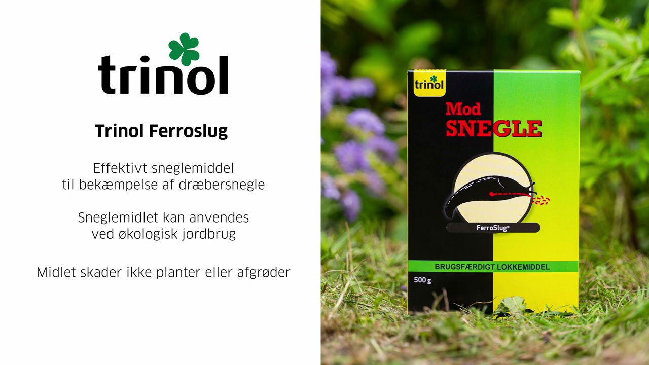 Trinol Ferroslug (500 g) er et effektivt middel til bekæmpelse af snegle i haven – herunder både dræbersnegle og andre typer snegle, der ødelægger planter, blomster og grøntsager. Produktet består af små blå korn, der indeholder det aktive stof jernfosfat, som er naturligt forekommende i jorden og uskadeligt for kæledyr, pindsvin og fugle. Sneglene tiltrækkes af kornene, spiser dem og trækker sig derefter tilbage til deres skjulesteder, hvor de dør inden for få dage.