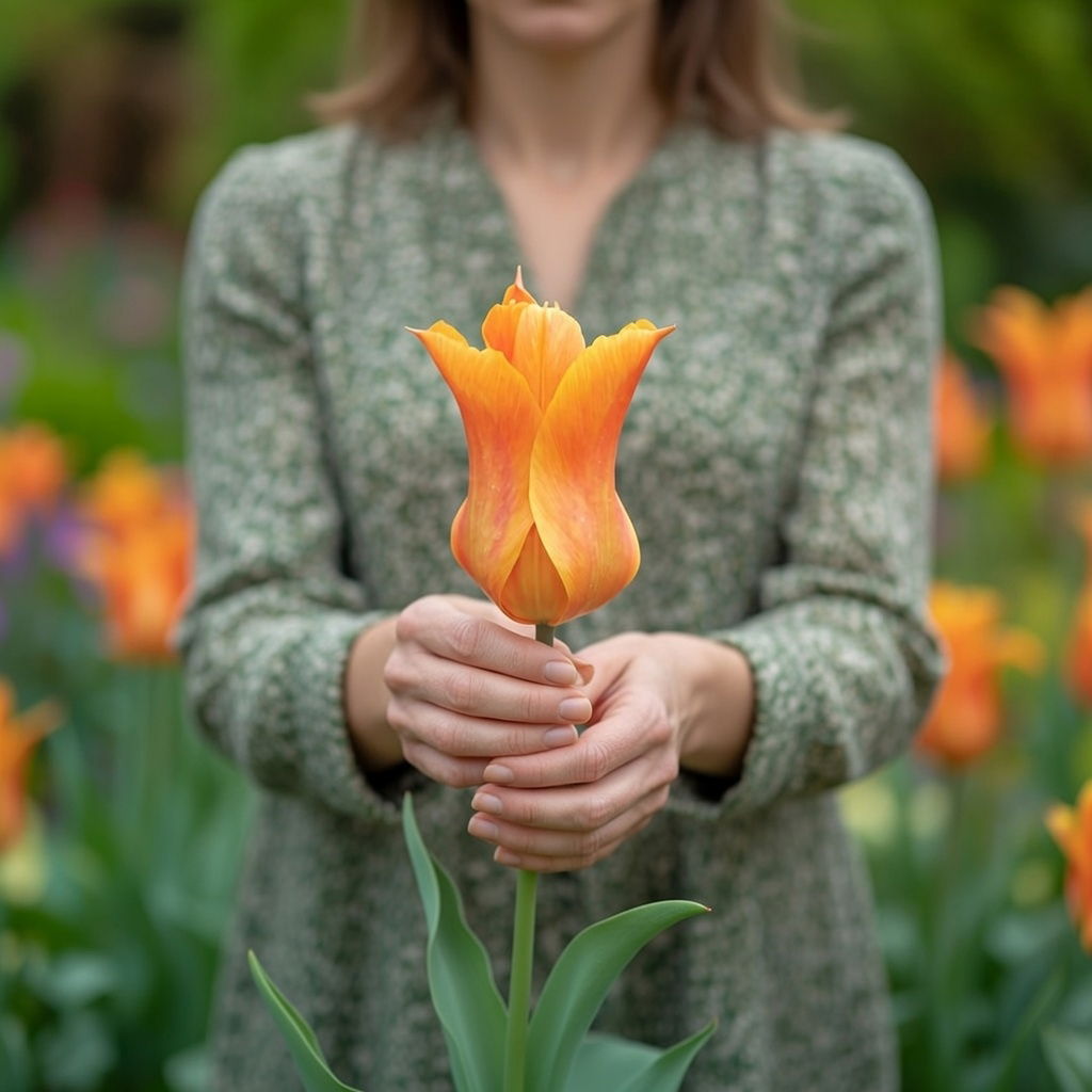 Tulipanen “Ballerina” er en af de mest spektakulære og populære medlemmer af tulipanfamilien, og er kendt for sin elegante form og farve. Blomsten hører til gruppen af liljeblomstrede tulipaner, der er kendt for deres smalle og spidse kronblade, der giver dem et lilje-lignende udseende, hvorfra gruppen får sit navn. Tulipanen har en delikat, sart duft.