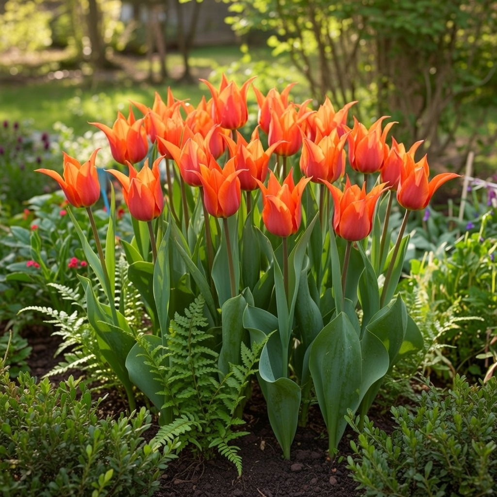 Tulipanen “Ballerina" har smukke, dybe orange farve og en elegant, strømlinet form. Hvert af de lange, slanke kronblade buer udad i en skarp spids, hvilket skaber en form, der minder om en ballerinas tutu i fuld pirouette. Dens smukke farve, der varierer fra en varm, gylden orange til en dyb, brændende rød, giver et dramatisk præg i enhver forårshave. Løgtulipanen plantes i efteråret og blomster i april/maj. Bør plantes i grupper.
