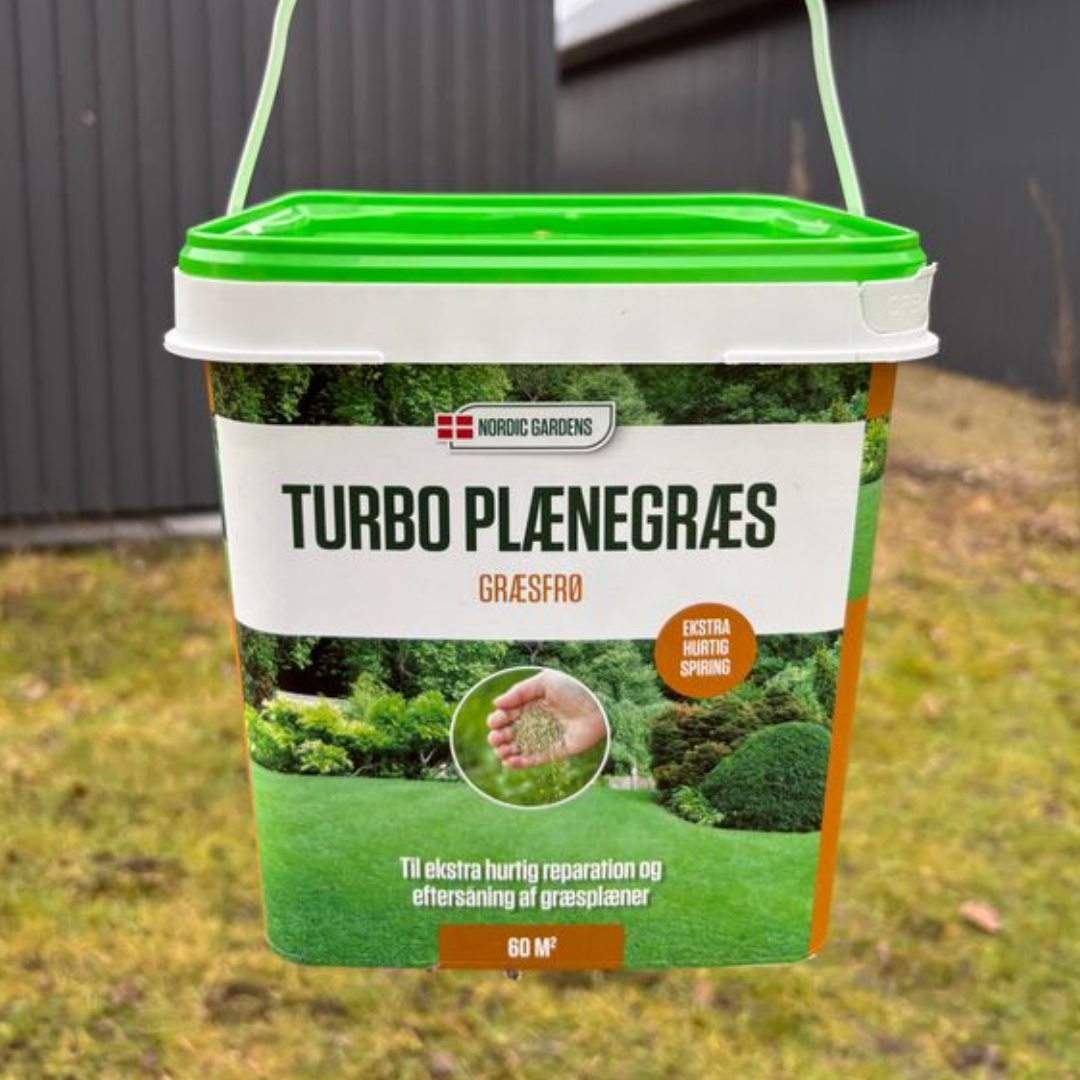 Turbo plænegræs er den rigtige græsblanding til ekstra hurtig reparation og eftersåning af græsplænen. Blandingen indeholder specielle sorter med særdeles hurtig fremspiring, også under kolde og vanskelige så-forhold. Sorterne i Turbo Plænegræs er sammensat så blandingen er særlig god til eftersåning i eksisterende plæne. Giver en høj grad af slidstyrke, god vinterfasthed og naturlig sundhed.