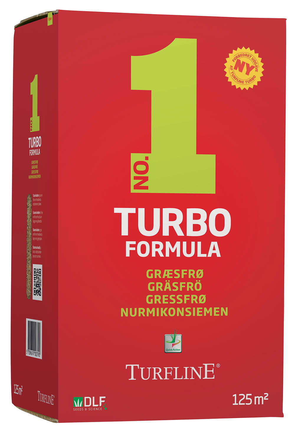 Turfline Turbo No. 1 spirer og etablerer sig hurtigt. Det er en græsfrøblanding, som giver en grøn og slidstærk plæne.