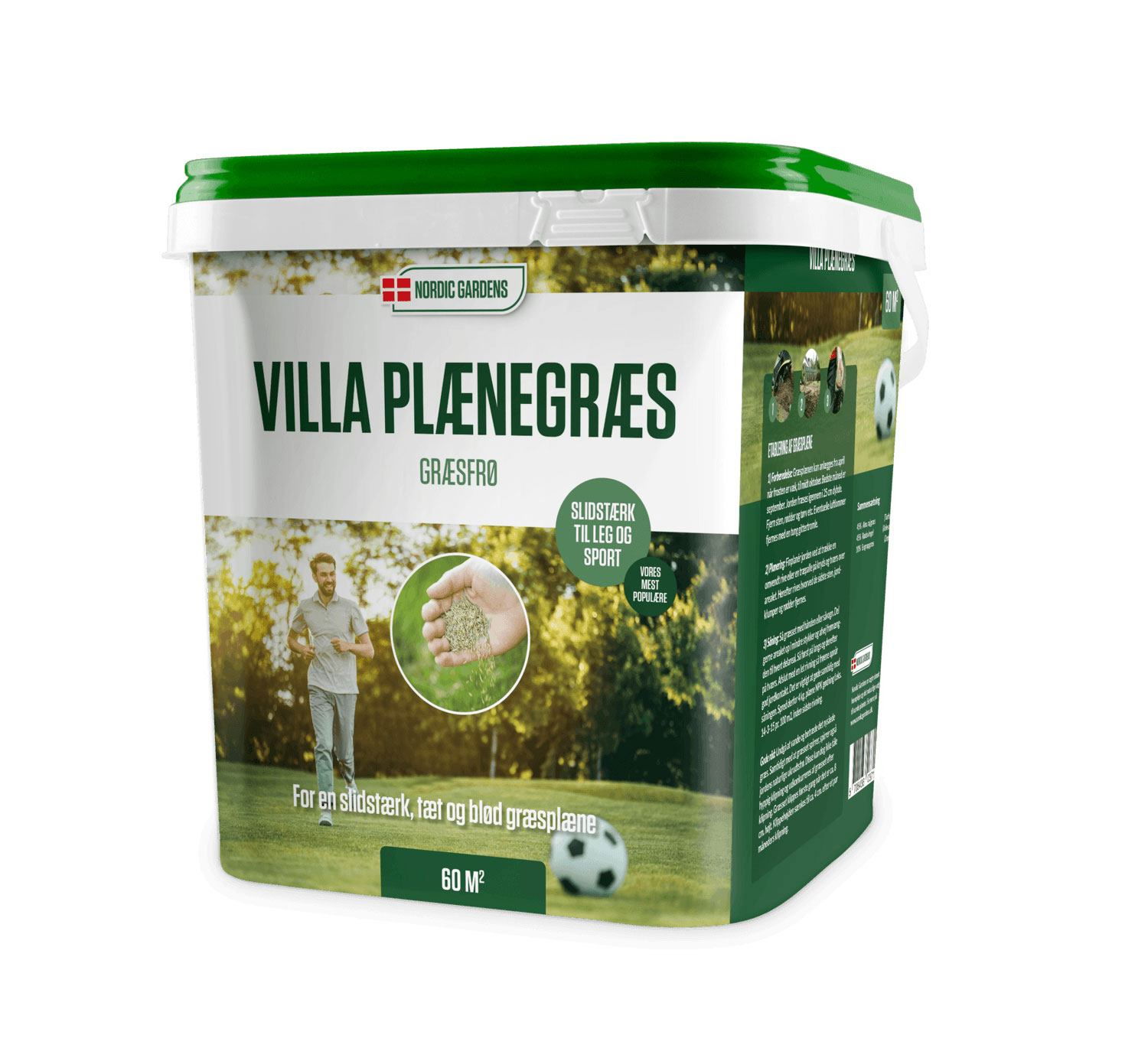 Nordic Gardens Villa plænegræs er anlægsgartnernes foretrukne græsblanding, og giver en tæt, flot og slidstærk græsplæne. Perfekt til sport og leg. Blandingen er velegnet til størstedelen af alle haver. Sorterne i Villa plænegræs er sammensat så blandingen giver en robust brugsplæne med stor ensartethed, god vinterfasthed og høj tørke-tolerance. En græsblanding med flere arter gør græsplænen mindre sårbar overfor sygdomme og indhold af engapgræs og rajgræs giver god slidstyrke.