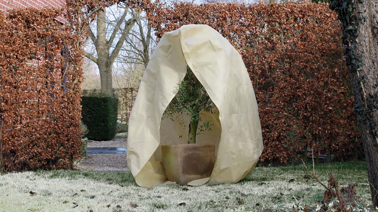 Overtrækket er designet til både mindre og større buske og planter, også dem der normalt ikke tåler frost – f.eks. oliventræer eller andre middelhavsplanter.